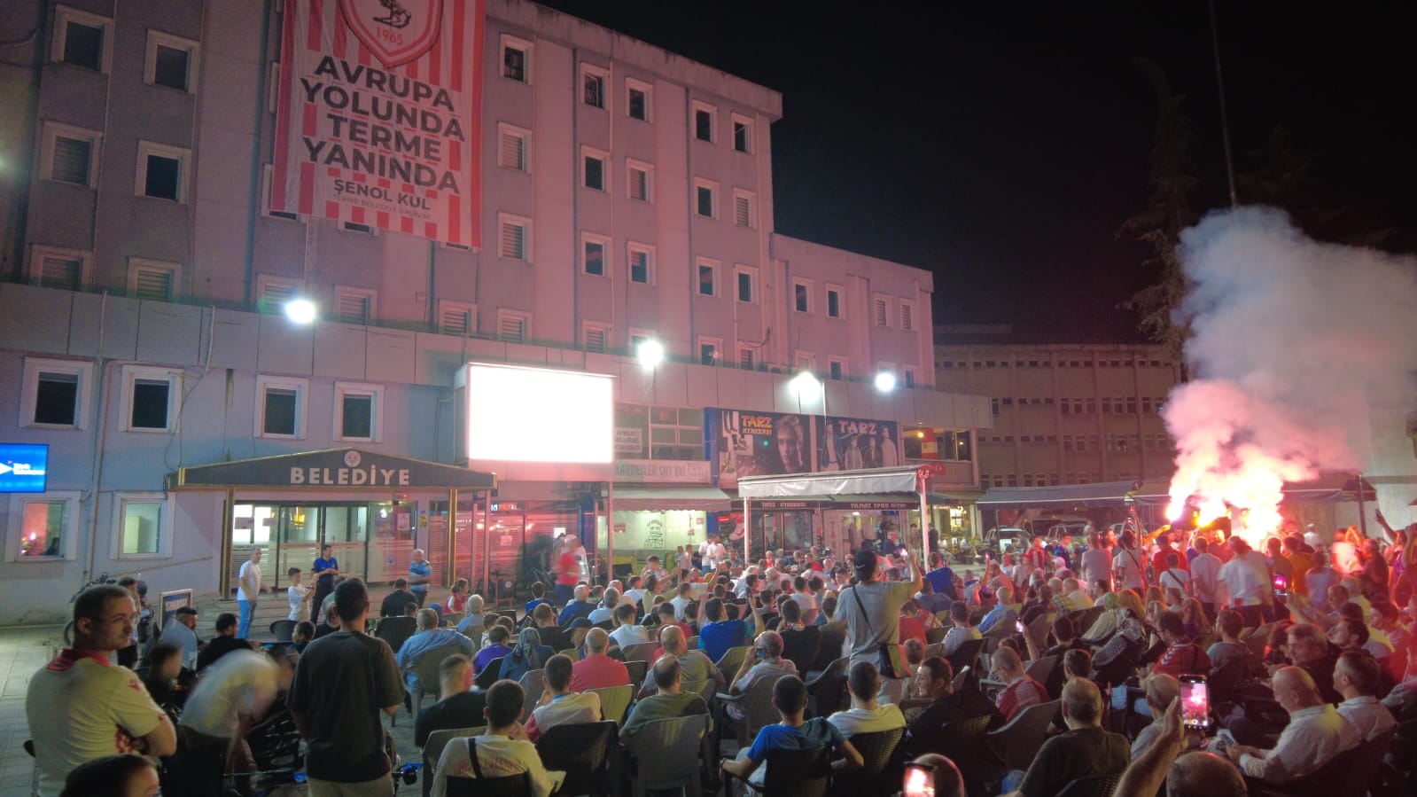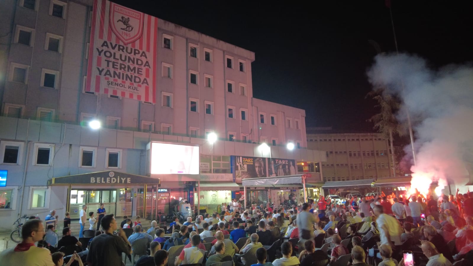 Maçı Terme'de kurulan dev ekrandan takip eden yüzlerce Samsunspor taraftarı, takımlarına coşkulu bir şekilde destek oldu. "Avrupa Yolunda Terme Yanında" mesajıyla geceye damga vurdular. Terme Belediyesi öncülüğünde Samsunsporumuzun UEFA Avrupa Ligi play-off turu ilk maçında Yunan ekibi Panathinaikos maçı Terme Cumhuriyet ve 15 Temmuz Milli İrade Meydanı'nda dev ekranda yayımlandı. Samsunspor taraftarı meşalleri yaktı, tezahüratlarla çoşku doruğa çıktı.