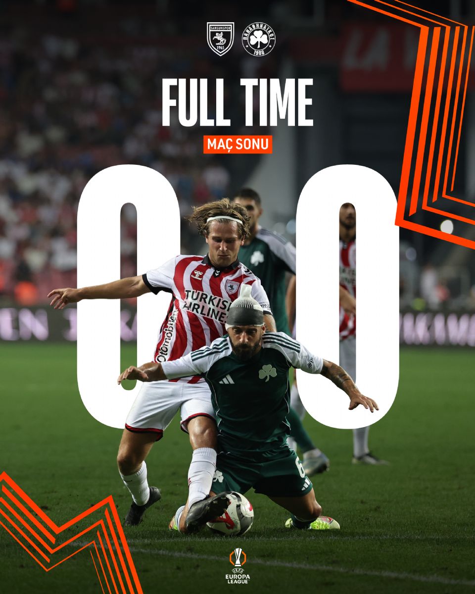 UEFA Avrupa Ligi play-off turu rövanş maçında Samsunspor, sahasında Panathinaikos ile 0-0 berabere kaldı. Yunanistan'daki ilk maçı 2-1 kazanan Panathinaikos, toplamda 2-1'lik skorla turu geçerek Avrupa Ligi gruplarına kaldı. Samsunspor ise Avrupa yolculuğuna UEFA Konferans Ligi'nde devam etme hakkı kazandı.