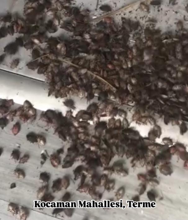 SAMSUN - Terme ilçesinde, son günlerde sürüler halinde ortaya çıkan kahverengi kokarcalar, vatandaşların kabusu oldu. Özellikle kırsal mahalleleri istila eden böcekler, evlerin ve arabaların içine kadar girerek yaşamı zorlaştırıyor.