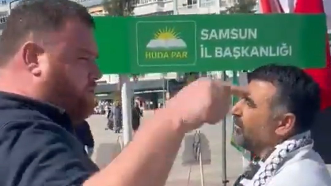 HÜDAPAR Samsun İl Başkanlığı, "Soykırımcı Çifte Vatandaşlara Yönelik Kanun Teklifi"nin kabul edilmesi amacıyla imza kampanyası başlattı ve Gazze'deki insanlık dramına dikkat çeken bir fotoğraf sergisi açtı. Etkinliğin ikinci gününde, standın yanına gelen iki kişi, partililere sataşarak sloganlar attı ve anları cep telefonuyla kaydetti.