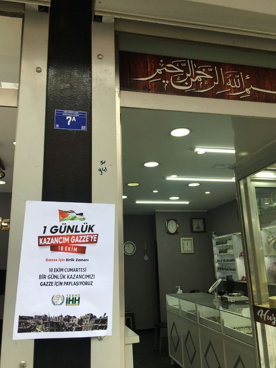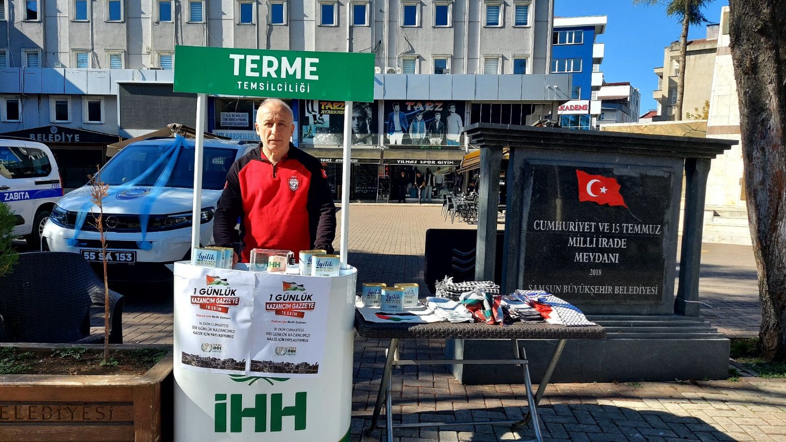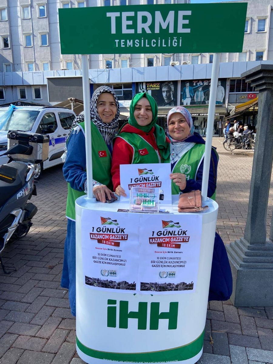Terme İHH Temsilciliği tarafından düzenlenen "Bir Günlük Kazancım Gazze'ye" kampanyası kapsamında, 18 Ekim Cumartesi günü Terme Cumhuriyet meydanında bir stand açıldı. "Gazze İçin Birlik Zamanı" sloganıyla hayata geçirilen kampanyaya, Termeli esnaf ve vatandaşlar büyük ilgi gösterdi.