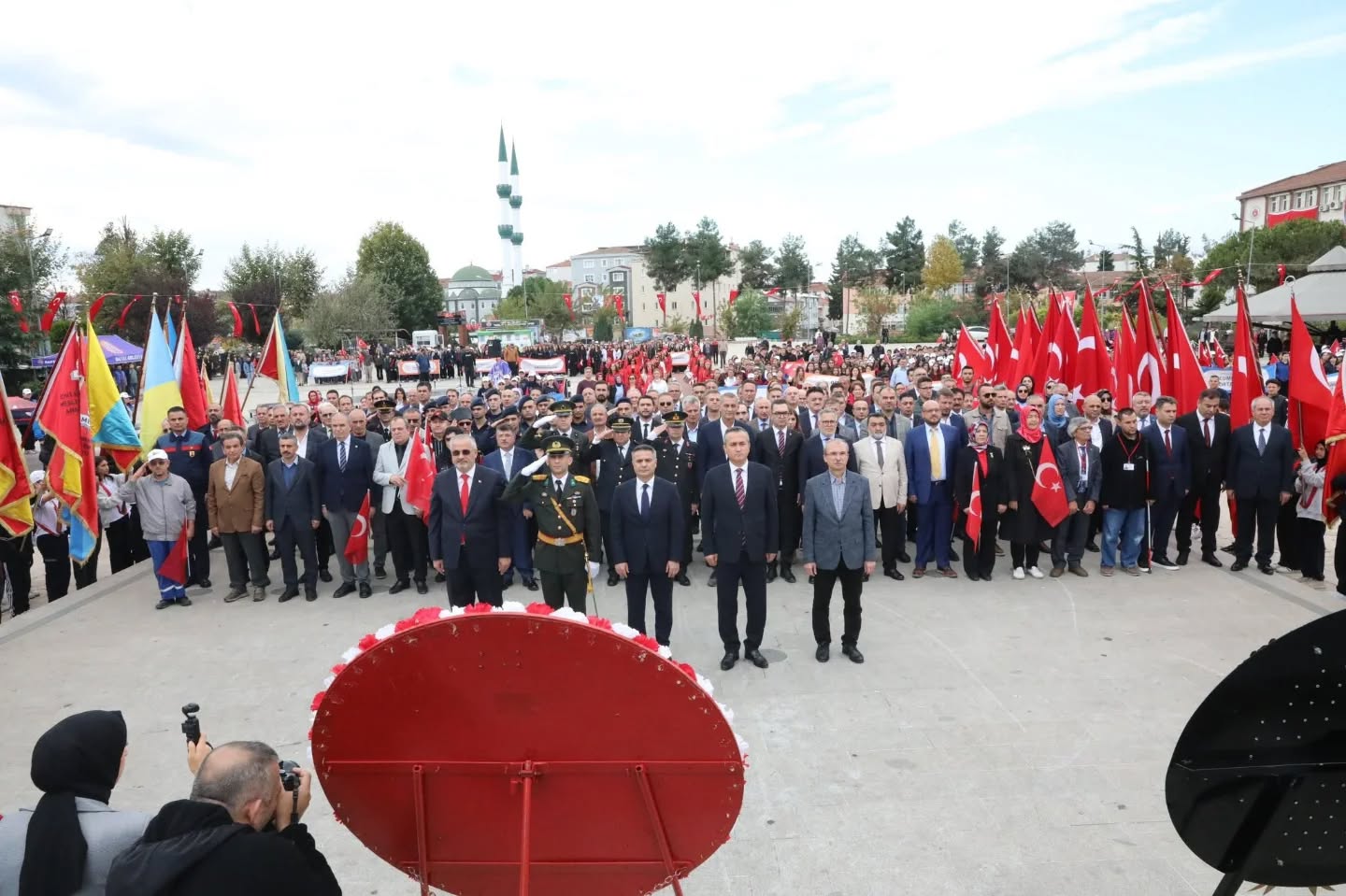 Sabahın erken saatlerinde başlayan kutlamalar, kent merkezinde düzenlenen resmi törenle devam etti. İlk olarak Atatürk Anıtı'na çelenk sunuldu. Saygı duruşunda bulunulması ve İstiklal Marşı'mızın coşkulu bir şekilde okunmasının ardından, törene katılan protokol ve vatandaşlar, bu anlamlı günün heyecanını birlikte yaşadı.