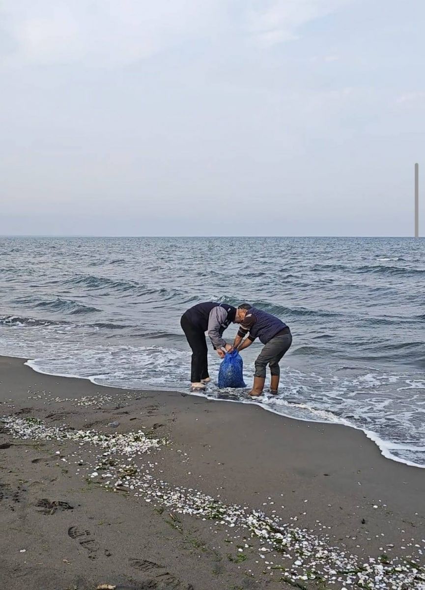 Operasyonda ele geçirilen yaklaşık 200 kilogram midye (kum şırlanı), Terme Miliç Jandarma Karakolu arkasındaki sahilden yeniden denize bırakıldı.