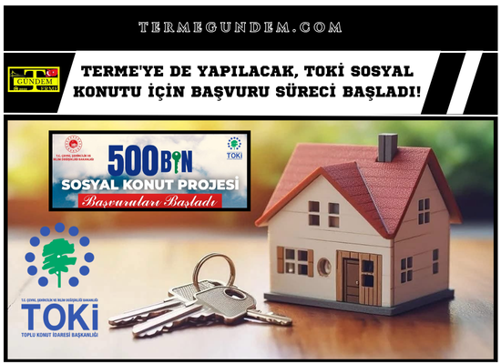 Toplu Konut İdaresi (TOKİ) tarafından Samsun'un Terme ilçesine kazandırılacak 300 konutluk proje için de başvurular aynı tarihler arasında (10 Kasım - 19 Aralık 2025) alınmaya başlandı.