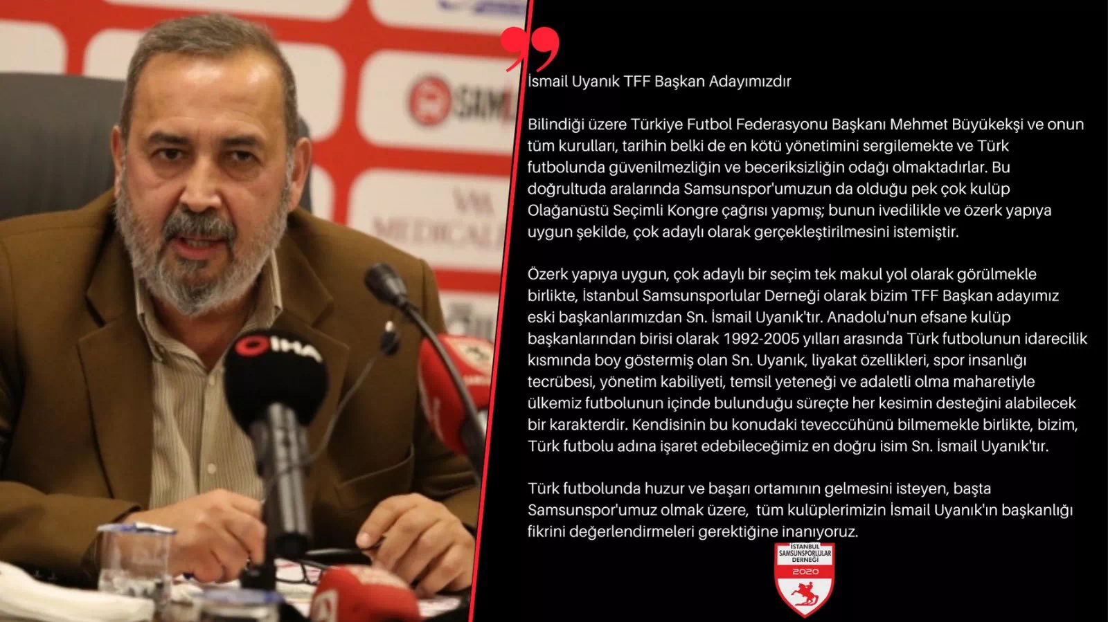 Samsunspor'un efsane başkanı İsmail Uyanık TFF başkan adaylığını açıkladı.