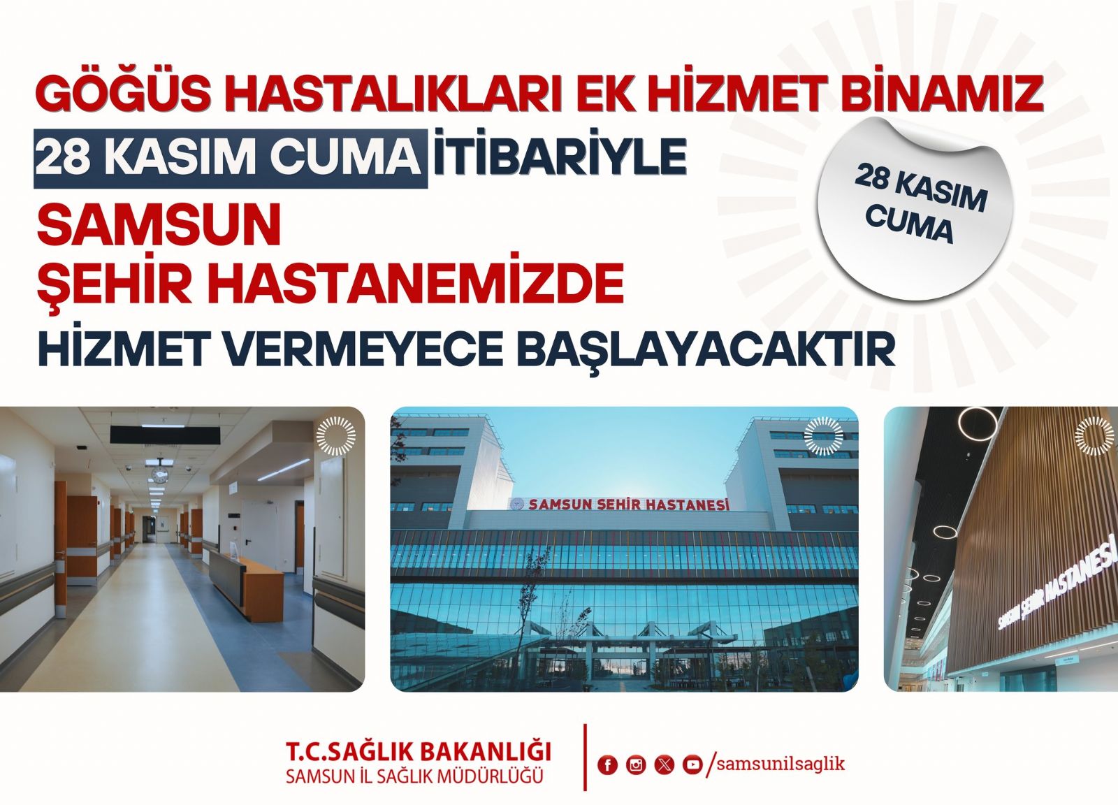 Samsun’un merakla beklediği Samsun Şehir Hastanesi, 28 Kasım Cuma günü itibarıyla Canik’teki ana binasında hizmet vermeye başlıyor. 1.458 yatak kapasiteli dev sağlık kompleksi, ilk etapta Göğüs Hastalıkları ve Göğüs Cerrahisi bölümleriyle hasta kabulüne başlayacak.