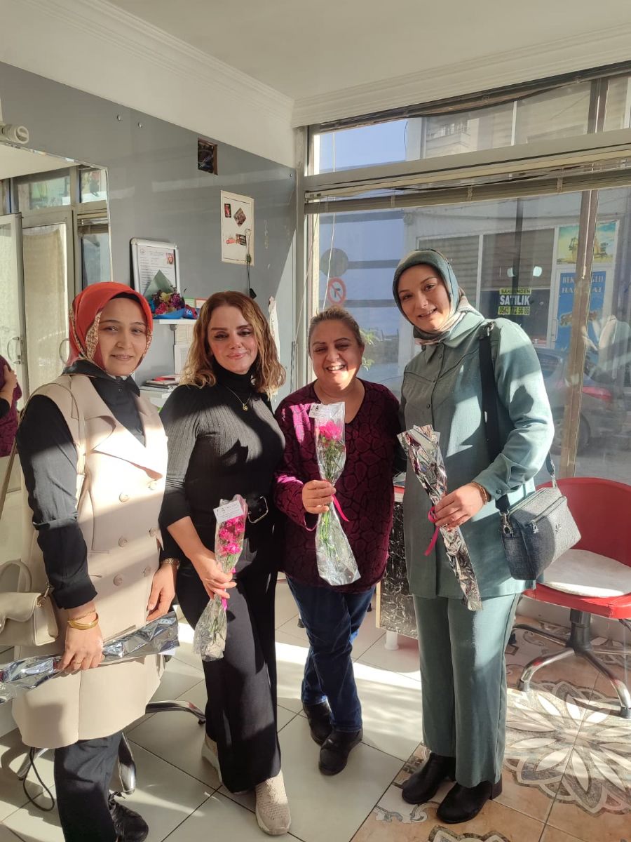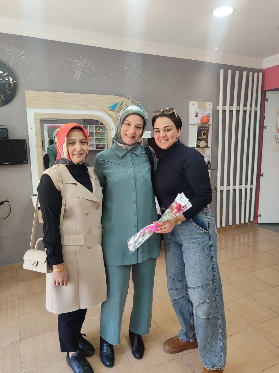 Anahtar Parti Terme İlçe Kadın Kolları, gün içinde esnaf kadınları da ziyaret ederek karanfil takdim etti ve kadınların hakları ile toplumsal rolüne dikkat çekti.