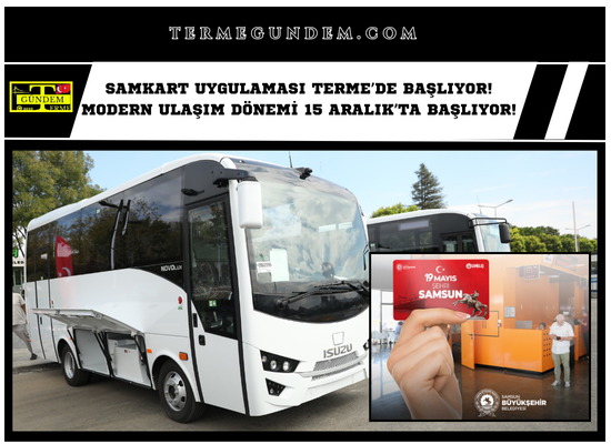 Samsun Büyükşehir Belediyesi’nin toplu ulaşımda büyük dönüşüm sağlayan Samsun Toplu Ulaşım Sistemi (SATUS) projesi kapsamında Terme ilçesinde beklenen adım atıldı. 15 Aralık 2025 Pazartesi günü itibarıyla Terme’de şehir içi ulaşımda SAMKART dönemi resmen başlıyor!
