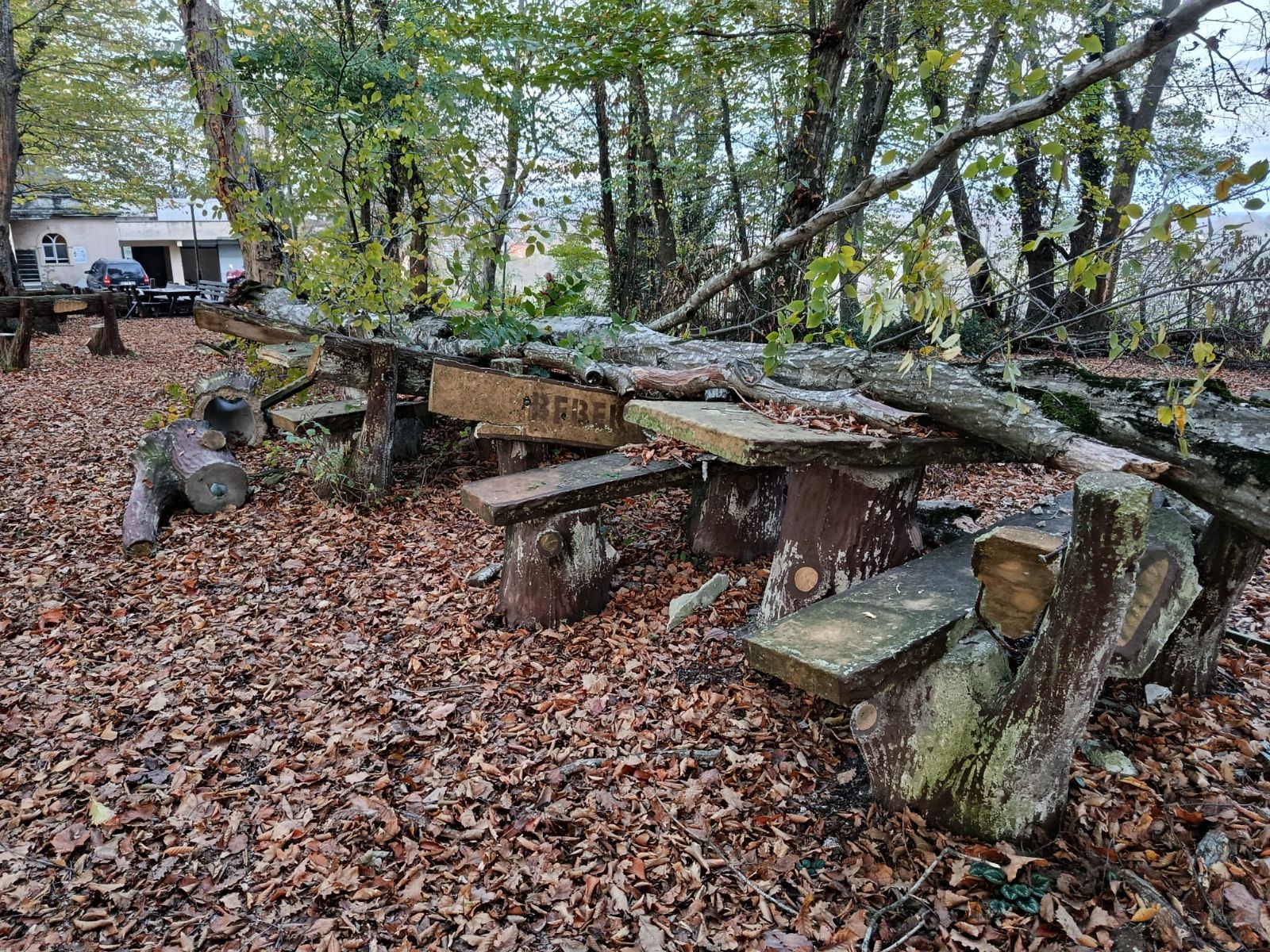 Türbe çevresinde yıkılan ağaçlar, kırık banklar, çöpler