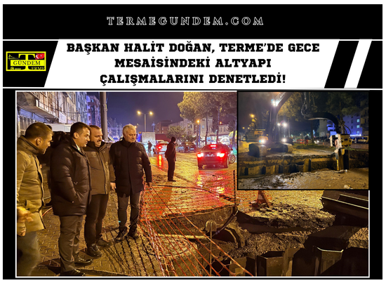 Başkan Halit Doğan, Terme’de Gece Mesaisindeki Altyapı Çalışmalarını Denetledi!