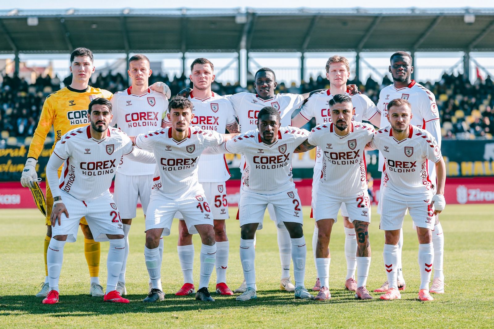 Karşılaşmaya adeta fırtına gibi başlayan Samsunspor, henüz 1. dakikada golü buldu. Celil Yüksel’in uzun pasıyla savunma arkasına sarkan Marius Moundilmadji, kaleciyi de ekarte ederek topu ağlara gönderdi ve takımını 1-0 öne geçirdi. Baskısını sürdüren Samsunspor, 16. dakikada Yalçın Kayan’ın ayağından bulduğu golle farkı ikiye çıkardı.