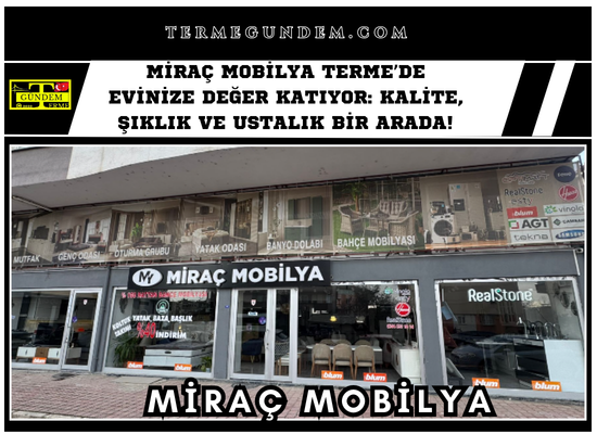 “Eviniz bizim işimiz, memnuniyet bizim imzamız” sloganıyla yola çıkan Miraç Mobilya, uygun fiyat, kaliteli işçilik ve güvenilir esnaf anlayışıyla Terme ve çevre ilçelerde tercih edilmeye devam ediyor.