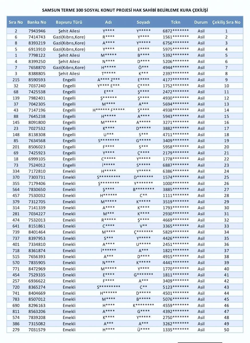 TOKİ tarafından Terme ilçesinde inşa edilecek 300 sosyal konut, özellikle dar gelirli vatandaşlar için önemli bir umut oldu. Kura çekimi sonucunda şehit aileleri, gaziler, engelliler, emekliler, gençler ve üç çocuk ve üzeri aileler için ayrılan kontenjanlar kapsamında asil hak sahipleri netleşti.