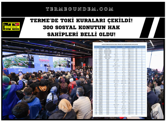 Terme TOKİ kura sonuçları, Çevre, Şehircilik ve İklim Değişikliği Bakanlığı ile TOKİ’nin resmi internet sitesi üzerinden yayımlandı. Ayrıca kura listeleri ilçe genelinde kamuoyuyla paylaşıldı.