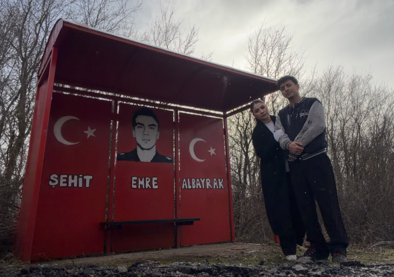 “Şehidimizin evine giden yoldaki bakımsız durak dikkatimizi çekmişti. Eşimle birlikte ne yapabiliriz diye düşündük ve durağı yenilemeye karar verdik. Hava koşulları, kar ve yağmur derken; bir de çocuğumuz küçük olduğu için bu süreç yaklaşık bir hafta sürdü. Bu süre boyunca durağın paslarını kazıdık, kat kat boyadık, portre çizimi ve yazıları tamamladık. Çok şükür bitirdik.”