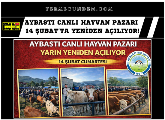 Gözler şimdi 14 Şubat Cumartesi günü yeniden kurulacak Aybastı Canlı Hayvan Pazarı’na çevrildi. İlçede hem üreticiler hem de tüccarlar yoğun katılımlı ve hareketli bir pazar günü bekliyor.